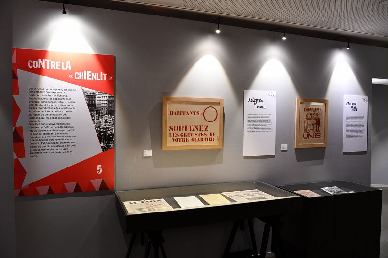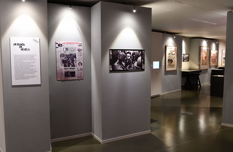 Le volet historique montre comment le mouvement a pris forme et s’est développé, et quelles conséquences, immédiates ou plus lointaines, il a eu sur l’évolution de la société française. Surtout, l’exposition insiste sur les aspects particuliers des événements à Marseille et leur traitement par la presse quotidienne.