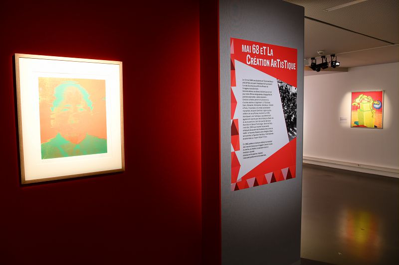 Le deuxième volet de l’exposition est consacré à l’art en 68, domaine ayant particulièrement contribué et profité de l’agitation des idées durant cet épisode. La présentation d’une sélection d’œuvres d’art contemporain nous rappelle également que le mouvement de mai 68 s’inscrit dans un moment particulier où des formes de contestations se sont développées partout dans le monde.