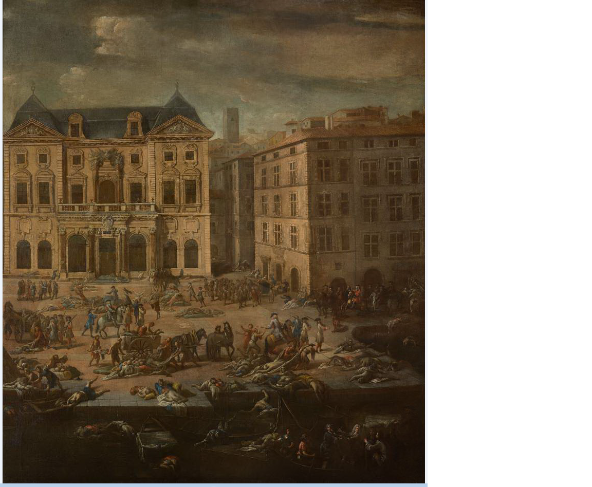 Tandis que la peste se répandait à présent dans le terroir, dans la ville intra-muros, les malades sortaient des maisons pour qu’on les trouvât dans la rue et qu’on les transportât jusqu’aux hôpitaux saturés ; certains tombaient raides morts et l’on comptait désormais chaque nuit des centaines de corps amoncelés dans les espaces publics. Dans la haute ville populeuse où l’on mourrait en plus grand nombre, l’étroitesse des rues tortueuses inaccessibles aux charrettes présentait une difficulté supplémentaire pour l’évacuation des victimes. Les forçats furent chargés de les porter sur des brancards jusqu’aux caveaux des églises où ils devaient être ensevelis, puis arrosés de chaux vive que les échevins faisaient livrer devant la porte des édifices religieux, avec des barriques d’eau et du ciment. Cette disposition alarmait le clergé, qui n’avait évidemment pas les moyens de s’y opposer et, avait déjà perdu un nombre considérable de ses effectifs au service de la population. L’échevinat décida de faire cesser les services religieux dans les églises, lesquelles restaient toutefois encore ouvertes malgré le péril.