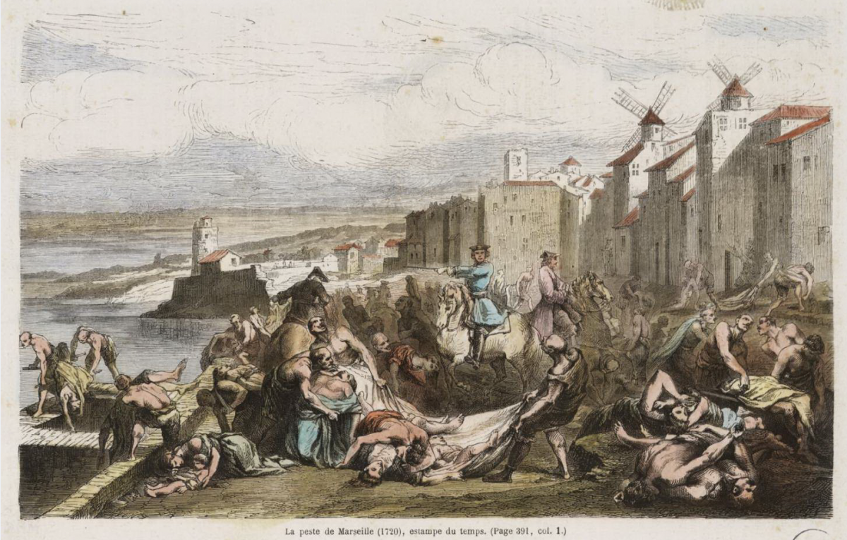 « Le 30, on ne peut plus se soutenir à la veüe des spectacles afreux qui se présentent partout : on avoit plus de corbeaux pour lever les corps qui se pourrissent dans les maisons et dans les rues ; on n’oze plus demander des forçats aux Mrs des galères ; la puanteur qui s’exhale des appartemens où étoient les cadavres met les habitans ou les voisins dans la nécessité d’y entrer avec des crochets, des cordes pour les tirer ; ils les traînent le plus loing qu’ils peuvent pour n’en être pas infectés. Cependant, la plus part prenant ainsi la peste. Autre que l’air de ces maisons est contagieux, c’est qu’il étoit difficile de ne pas toucher quelque chose empestée, ce qui donnoit infailliblement la peste. Toutes les rues de la ville sont si pleines de corps morts, de malades, de chiens et de chats que l’on a tués, de hardes de toutes espèces, que l’on ne trouve plus où reposer le pied : on voit surtout dans le Cours et dans les places publiques des tas de cadavres noirs et hideux qu’on ne peut regarder fixement sans tomber à la renverse. On débarque sur la place de la Loge, sur le quay et le long des palissades du port un si grand nombre de morts qu’on tiroit des vaisseaux et autres bâtiments de mer que l’on désespère de pouvoir les enlever : la surface du port est couverte de charognes qui augmentent l’horreur et l’infection. Les maisons du port qui faisoit autrefois le plus magnifique et le plus superbe amphithéâtre du monde sont devenües alors de sombres prisons. On ne peut plus en sortir sans s’exposer à la mort ni se présenter aux fenêtres sans être saisi de tristesse et d’horreur : on ne voit plus que des gens à cheval, des corbeaux, des phrénétiques. L’ardeur et la violence de la fièvre mettent les derniers en mouvement, les font errer sans qu’ils sachent où devoient aboutir leur course, souvent avec un air livide et languissant, ils tombent de foiblesse à travers des cadavres sans pouvoir se relever, restant dans des postures horribles ; ils expirent souvent au lieu même de leur chute. La force et la violence du venin pestilentiel mettent d’autres malades dans une telle agitation et espèce de désespoir qu’ils s’égorgent eux-mêmes, se précipitent dans la mer, dans des ruisseaux, se jettent des fenêtres de trop de maisons : quelle désolation, quelle rage, quelle fureur, quel désespoir ! Ceux qui ne sont pas attaqués de la peste peuvent-ils résister aux gémissements, aux plaintes, aux sanglots, aux pleurs et aux cris qui s’élèventde toute part ; ils sucomberoient sans doute à la douleur si tandis que Dieu les abbat ainsi il ne les soutenoit puisamment d’une manière invisible ».