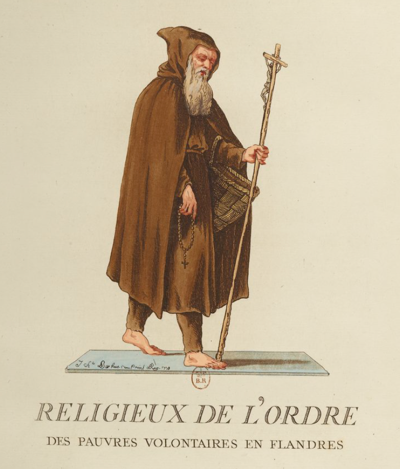Le pape Clément XII fait partie de ceux qui s’étaient employés à faire porter secours aux pauvres de Marseille (Publication # 38), tout comme l’évêque de Marseille, Mgr de Belsunce, qui avait fait distribuer les pains et les galettes aux plus démunis des pauvres de la ville et du terroir ainsi qu’aux « religieux à besace » qui avaient reçu des charges de blé pour l’occasion. Ces derniers appartenaient aux ordres mendiants, tels les Franciscains, les Dominicains et leurs très nombreuses ramifications présentes à Marseille, parmi lesquelles figuraient les Trinitaires Réformés. Les moines mendiants avaient fait vœu de pauvreté et ne devaient rien posséder individuellement ; ils mendiaient donc les vivres du couvent aux moulins à huile, à farine ou au pressoir, par exemple, et leur nourriture par les chemins. Beaucoup de ces religieux étaient morts en accordant les secours spirituels aux malades (Publication #24). Le Père Giraud (Trinitaire Réformé), dont l’ordre ne mendiait pas, avait vu l’effectif de son couvent décimé par la peste.